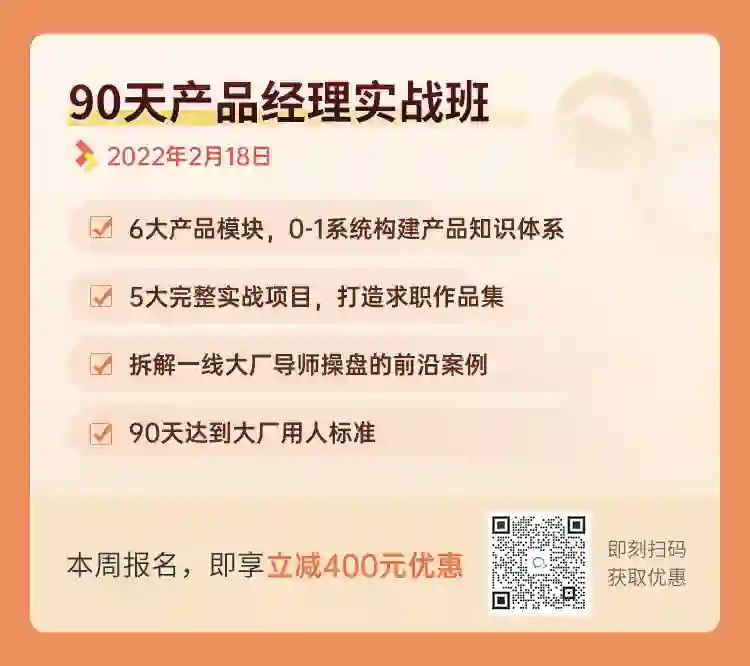 基于此,起点课堂联合多位来自BAT等产品领域的专业导师,借助他们丰富的实战及教学经验,做出了一个面向初、中阶产品经理的一门体系化的入门课程《90天产品经理实战班》。