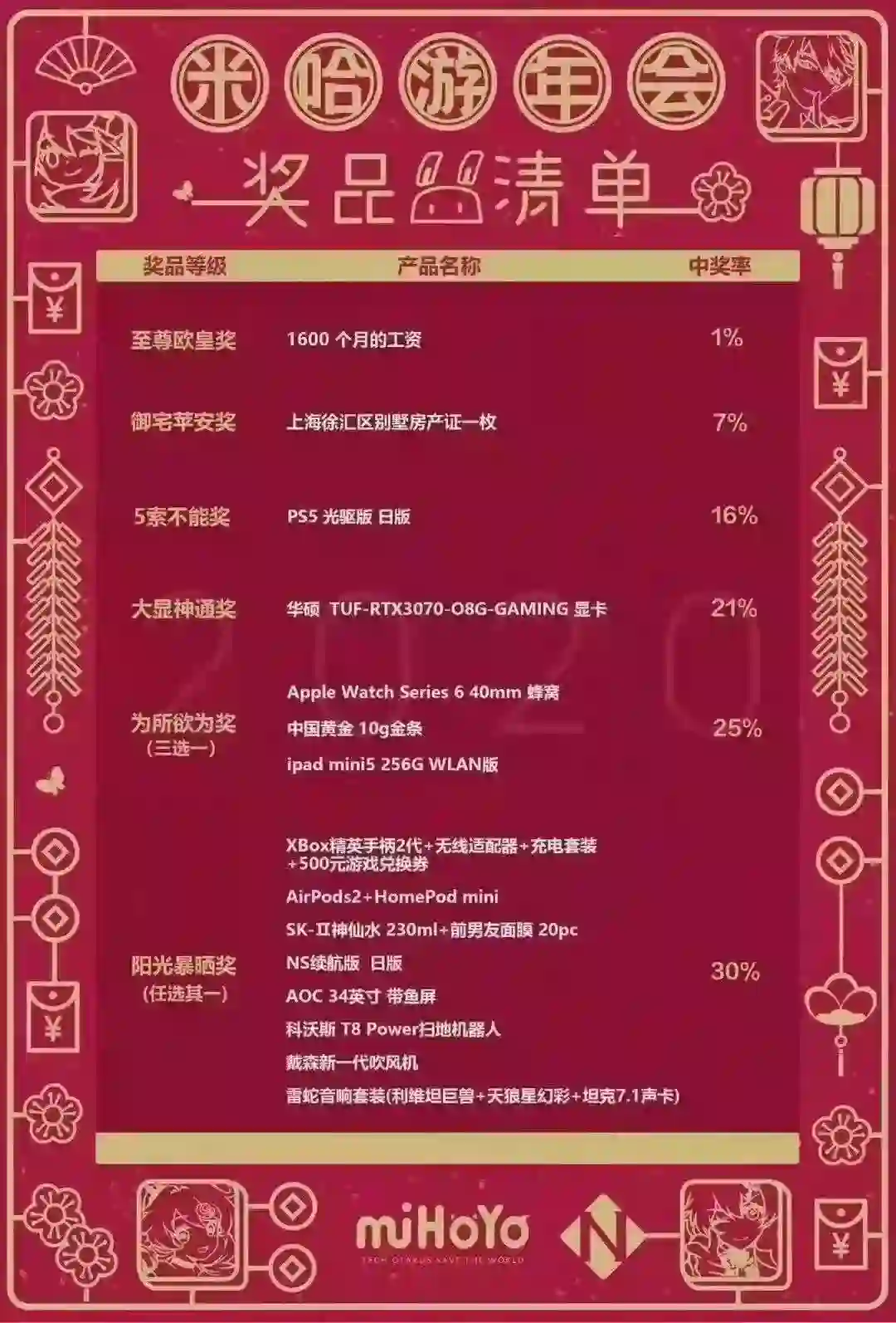 然鹅,天上哪里会真的掉馅饼!以上纯属网友恶搞,真实的米哈游年会奖品,是这样的——