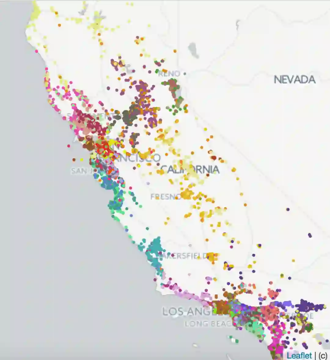 为了评估嵌入所捕获的房屋的特征,我们以几种方式对它们进行了研究。首先,为了评估地理相似性是否被编码,我们在已学习的嵌入上执行k-means聚类。左边的图显示了在加利福尼亚产生的100个聚类,证实了来自类似位置的列表是聚集在一起的。接下来,我们评估了不同类型的房源(全屋、私人房、共享房)和价格区间之间的平均余弦相似性,并证实了同类型房源和价格区间之间的余弦相似性要比不同类型房源和价格区间之间的余弦相似性高得多。因此,我们可以得出结论,这两个房屋的特征在已学习的嵌入中也得到了很好的编码。