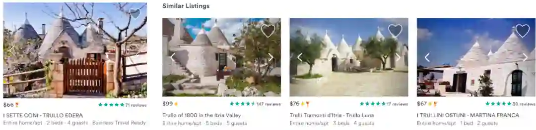 Airbnb的每个房屋页面都包含相似房屋推荐,会推荐与之相似的房屋,并在相同的日期提供这些房屋。
