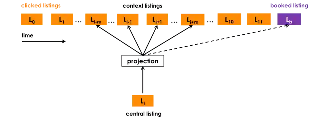 假设我们给定一个数据集,有N个用户的点击会话,每个会话表示为 s= (L₁,…, Ln)∈S,定义为一个用户不间断的点击序列。只要用户连续两次单击之间的时间间隔超过30分钟,就会启动一个新会话。给定这数据集,其目的是学习一个32维的实数向量表示:v(Li)∈R²³,每个房屋都是不一样的,同时,类似的房屋在嵌入空间中靠的较近。