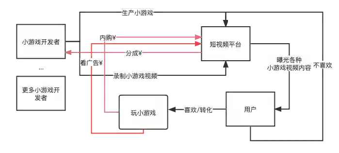 平台流量大,自然会给小游戏带来更多的用户,为开发者和平台带来更多的收益的同时,也会吸引更多更加优质的小游戏开发者优先在平台上投放或者首发自己的小游戏,整个生态其实就盘活了。