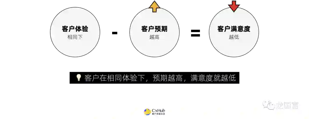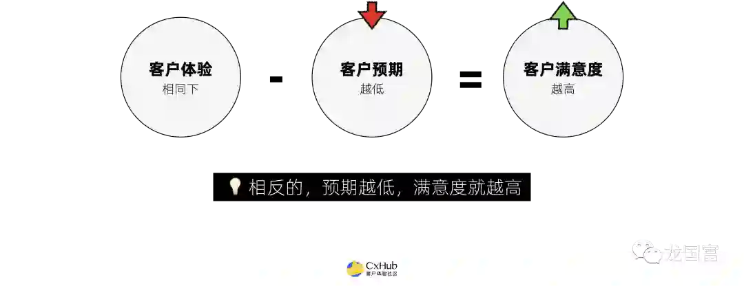 客户满意度的内在逻辑是:客户在相同的体验下,预期越高,满意度就会越低;相反地,预期越低,满意度就会越高。