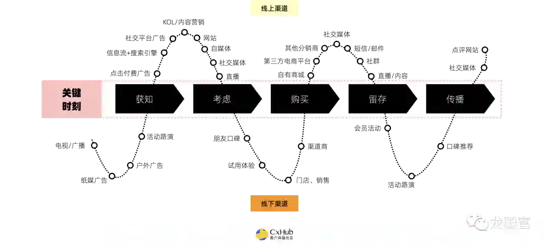 至于触达的节点,就可以在客户的旅程的触点进行寻找。通过梳理线上&线下的接触点,找到这些接触点与客户之间的关系,并盘点是不是匹配客户的关键时刻。