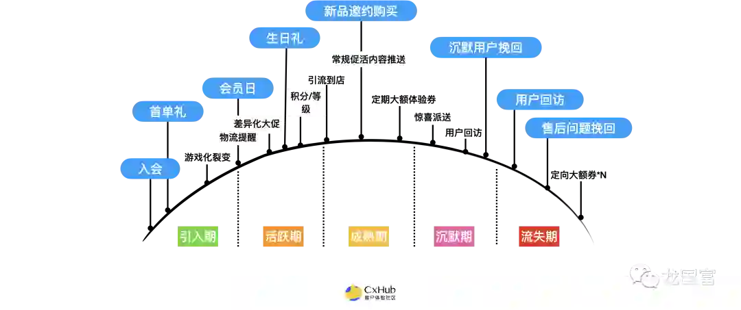 而在活跃期的时候,可以通过客户关怀,在生日、会员日等等时间,在触达客户的时候,送上一份心意,都可以达成召回客户,引发复购的效果。