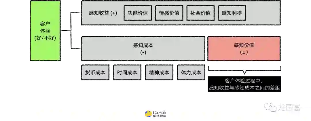 客户的体验是由客户体验感知价值决定的,感知的多少,决定着体验的好/不好。