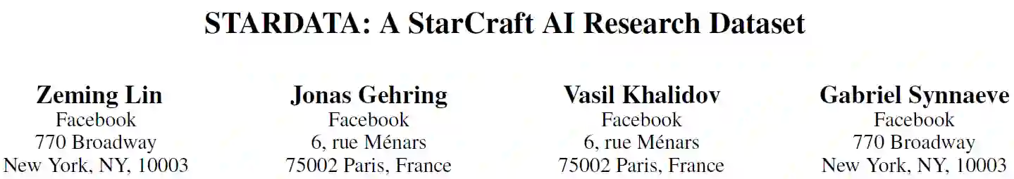 在 AlphaGo 征服围棋之后,即时战略游戏《星际争霸》已经成为各家科技巨头与大学的下一个目标。Facebook 在这一方面的研究似乎正处于领先地位。7 月初,田渊栋等人开源了基于星际争霸的人工智能游戏平台(参见:Facebook 开源游戏平台 ELF,简化版《星际争霸》完美测试人工智能)。最近,Facebook 又发布了一个大体量星际争霸录像数据集 STARDATA,旨在为广大研究者提供方便。