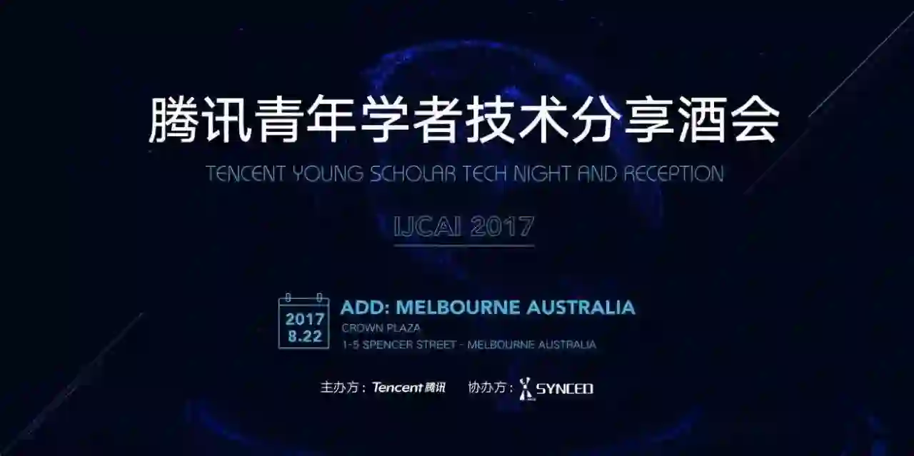 IJCAI 2017期间,腾讯联合机器之心在墨尔本举办青年学者技术分享酒会,点击阅读原文参与报名↓↓↓