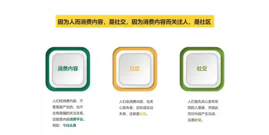 因为人而消费内容,是社交(在社交中,人们首先会关心发布东西的人是谁,并因此而对内容产生互动);