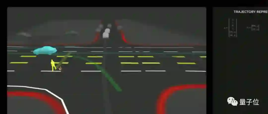特斯拉称,他们加入安全与舒适性等维度分析,通过树搜索算法并提供人类示范,让系统能找到「合适」通过的时机和路线,最终,从横穿马路的行人身后通过。