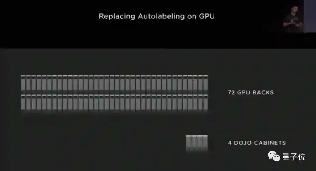 在替代性方面,他们以自动标注为例,宣称4个DOJO机柜可替代72个GPU RACKS: