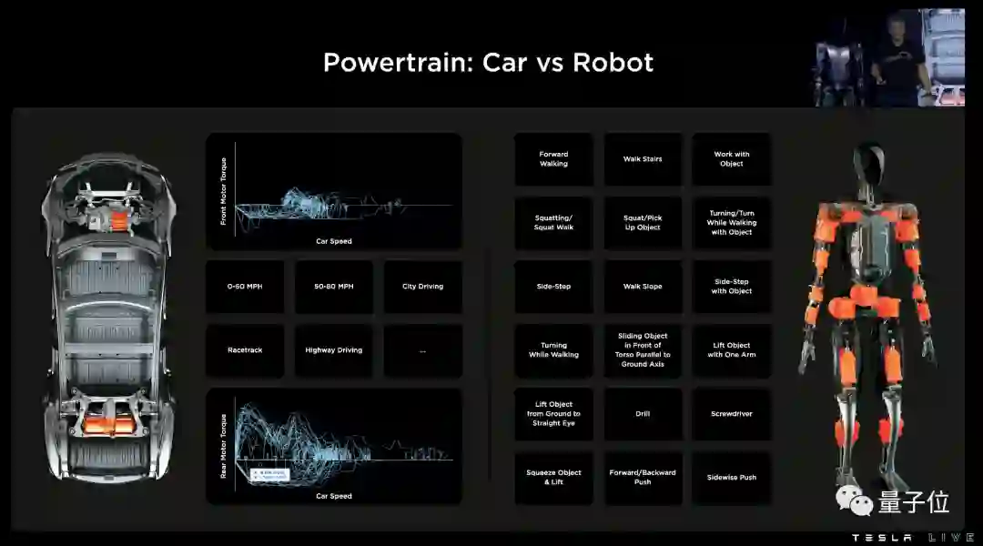 机器人则要完成行走、上台阶、蹲起、转身等更多身体动作,以及从拧螺丝到提重物等多样任务。