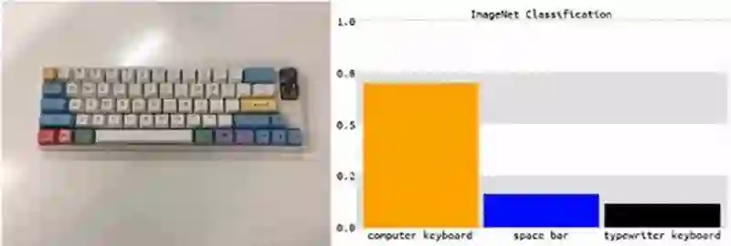 一个惨被误分类为海螺的键盘,使用的是 ImageNet 上的 WideResNet50 模型,研究者还特意确认了该模型对海螺是没有偏见的。