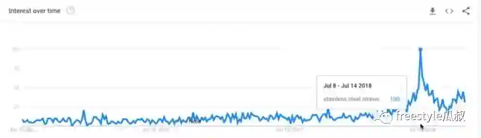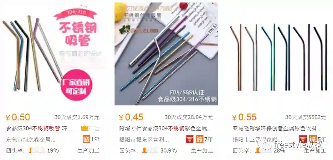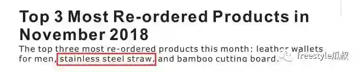 不锈钢吸管同样不是什么新品,但据调研公司报告显示,不锈钢吸管在2018年12月份仍然是复购很高的产品
