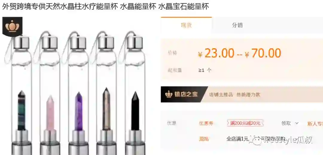 其实就是普通水瓶里面放块石英石,说是对身体健康有各种功效(此处请参见第三条认知价值)