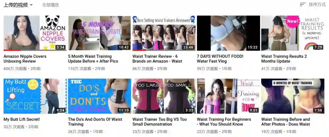 主打产品是这款瘦腰神器 ,看她自己youtube频道的视频点击率,就知道这不是演习~