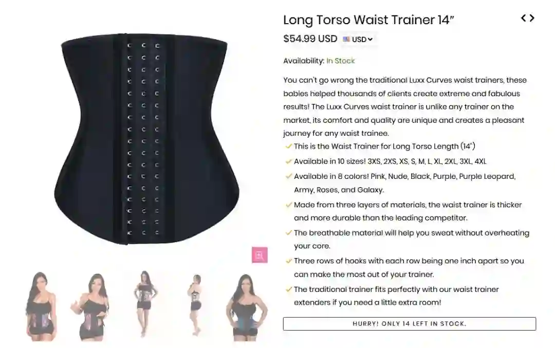 但这款产品的宣传点,不是“束腰”这么简单,而是“瘦腰训练器” (Waist trainer)