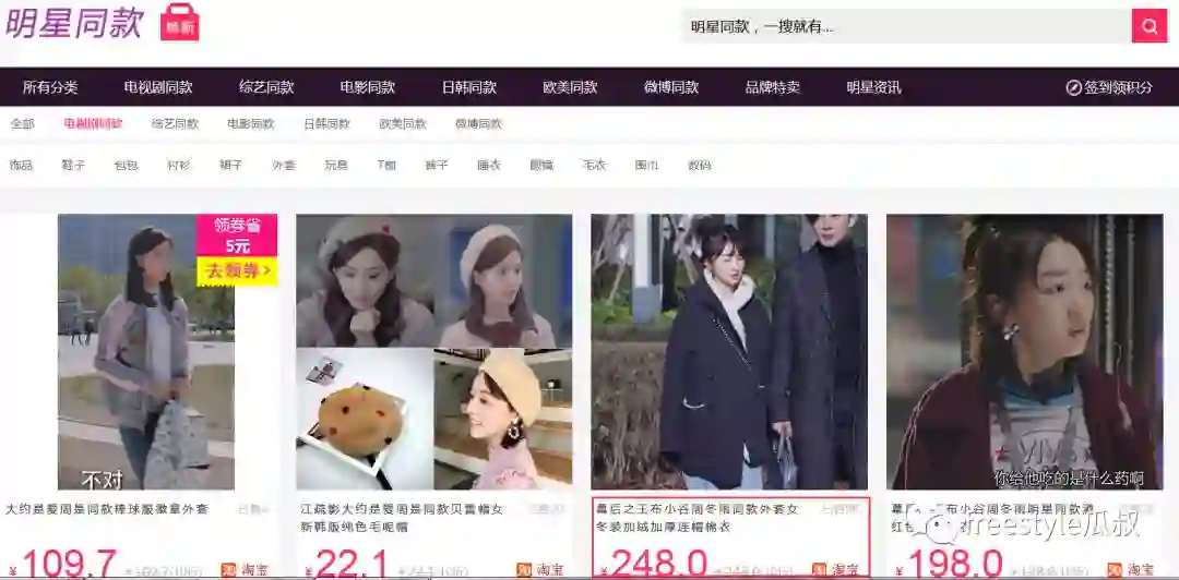 他们也懂得利用人们对影视明星IP的追逐心理,但不会只拘泥于某一个热点,而是把所有此类热点汇集在一起,做成一个系统性的同款网站