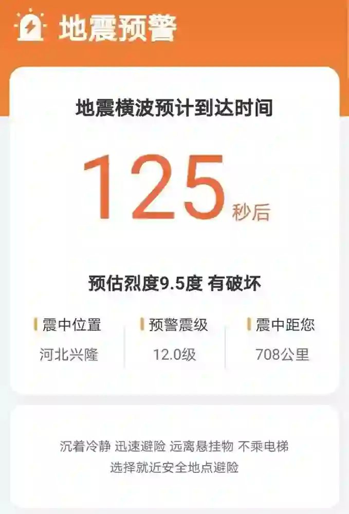 用户开启地震预警服务后,一旦周边发生地震,该产品会在破坏性地震波到达前,提前几秒到几十秒,以弹窗和警报声的形式,把震中位置、预警震级、预估烈度等地震预警信息告知用户。