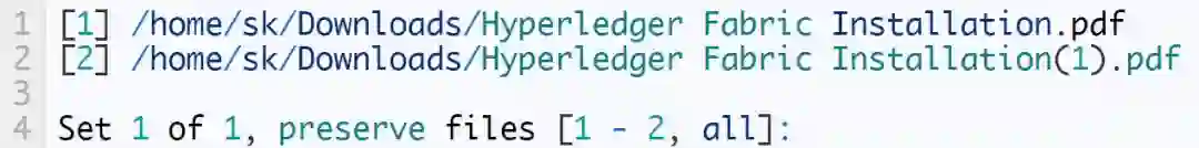 这个命令将提示你保留还是删除所有其他重复文件。输入任一号码保留相应的文件,并删除剩下的文件。当使用这个选项的时候需要更加注意。如果不小心,你可能会删除原文件。