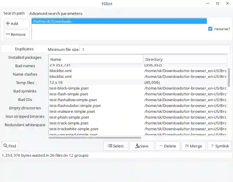 $ /usr/share/fslint/fslint/finded ~/Downloads/