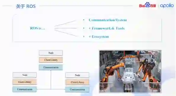 Apollo 最初用的中间件是 ROS(机器人操作系统),概括来说,ROS 系统主要包含三方面: