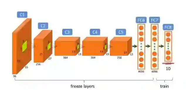 一个微调流程示意图展示如下,重新训练最后一层 10 维的神经网络。