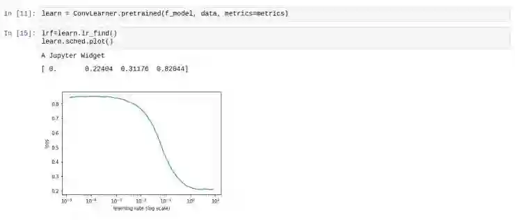在 fast.ai,你可以利用通过在学习者对象上运行 lr_find() 来利用学习速率退火的优势, 运行 sched.plot() 以确定与最佳学习率一致的点 ,截图如下: