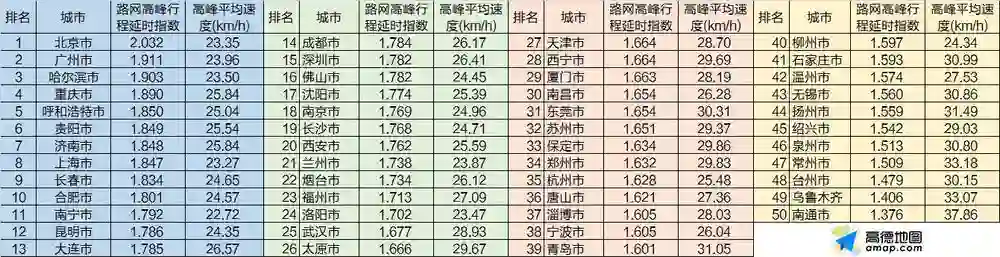 另一组数据源于今年1月发布的《2018年度中国主要城市交通分析报告》,全国交通大数据监测结果显示:2018年度北京路网高峰行程延时指数2.032,平均车速每小时23.35公里,位居2018年度中国堵城排行榜之首;广州位列第二,上海位列第八,深圳排在第十五位。