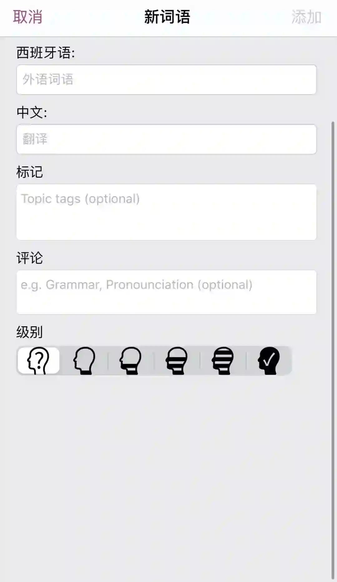 当然,它也有不足之处。它对于单词的掌握程度分为 1-5 分五档。对于我这类选择困难症用户而言,我可以明确地确定 0 分和 5 分,2 分和 3 分实在是太难界定了……