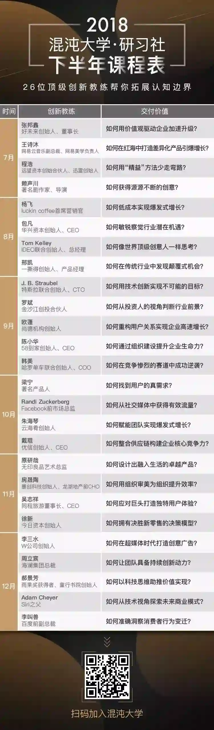 2018下半年课程表正式发布!