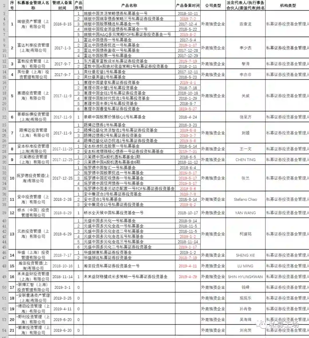 从2017年1月3日首家外资私募在协会完成私募管理人登记以来,已有富达、贝莱德、瑞银等国际知名金融机构积极在华设立外资私募管理机构,今年最新备案登记的外资私募包括联博汇智投资、安联寰通资产、德劭投资、野村投资、霸菱投资等。