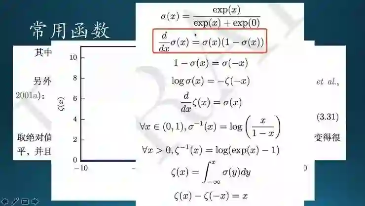 这是一些概率函数的基本性质。sigmoid求导非常方便,还有其他一些特性。softplus也有一些很好的性质,(x)-(-x)起来就等于x,挺简单。