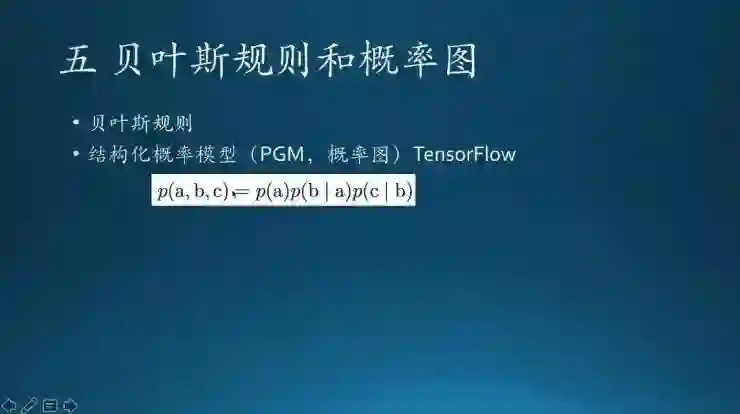 由条件概率引申出来的贝叶斯规则。像这个a、b、c的联合分布可以表示成这样,然后它可以对应一个图,概率图。像这样。