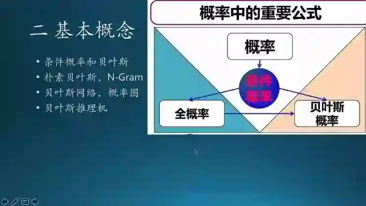 这是概率里面的几个重要概率。条件概率和全概率刚才已经说了,贝叶斯是基于这两个基础上的。