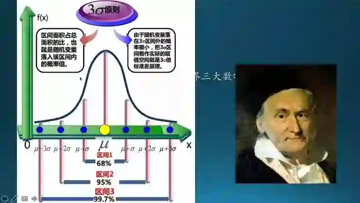 这是标准正态分布。一倍标准差、两倍、三倍的位置对应的面积不同,分别覆盖了68%、95%、99.7%。三倍标准差以外的事件就当作小概率事件,这也是它的定义方式。