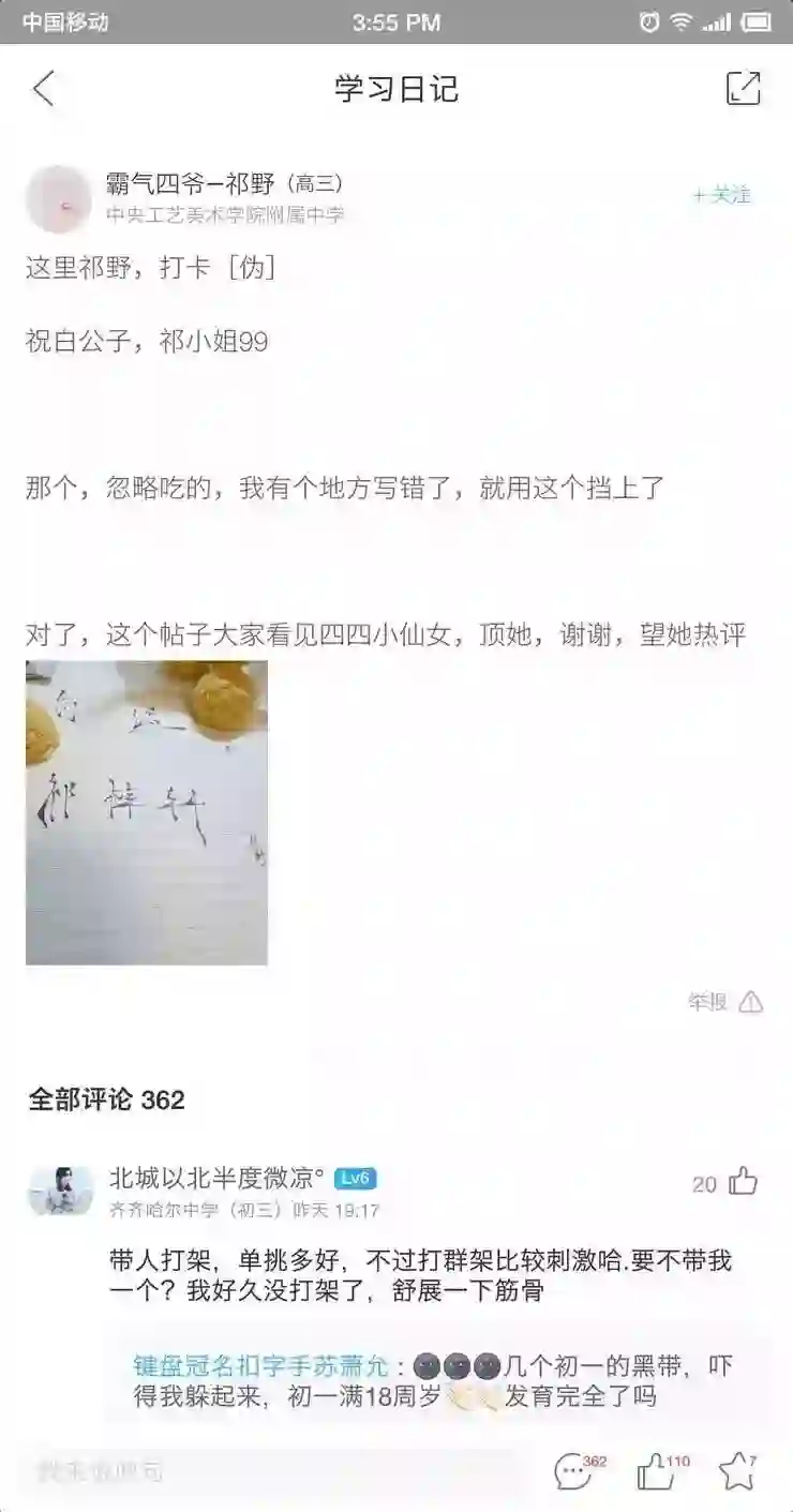 雷锋网也下载了多款学习类App,在某作业App的“学习圈”中依然发现了关于“打架”等字眼的内容。