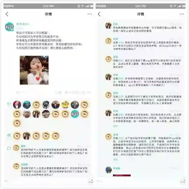 因此,雷锋网下载了这款校园App并进了兰州交大同学圈发现,兰州交大校园号“兰交大小i”回应了学生们的质疑并置顶。该校园号声称,此次采集学生信息为校方行为,所有数据归学校所有,该App作为第三方平台只提供技术支持。