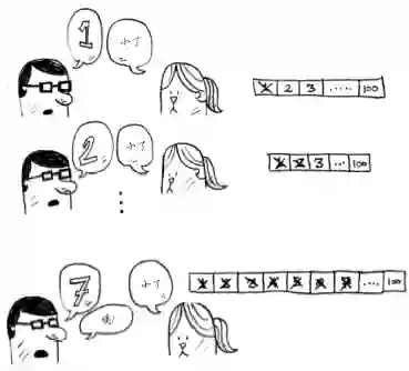 1,小了。那就是 2,2 也小。那就是 3……就这样一个一个猜测数字花费了很长时间。如果他定的数字是 99,那我要猜 99 次才能猜到!小伙伴表示很无奈,后来也不想再和我玩了。