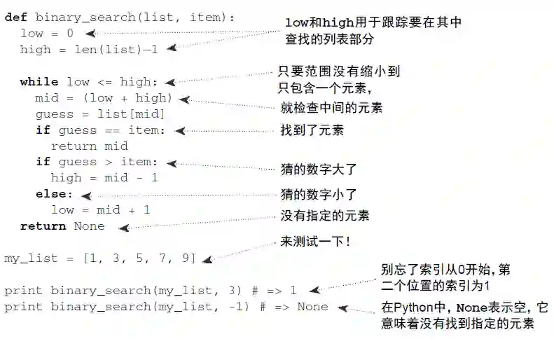 函数 binary_search 接受一个有序数组和一个元素。如果指定的元素包含在数组中,这个函数将返回其位置。我们将跟踪要在其中查找的数组部分——开始时为整个数组。