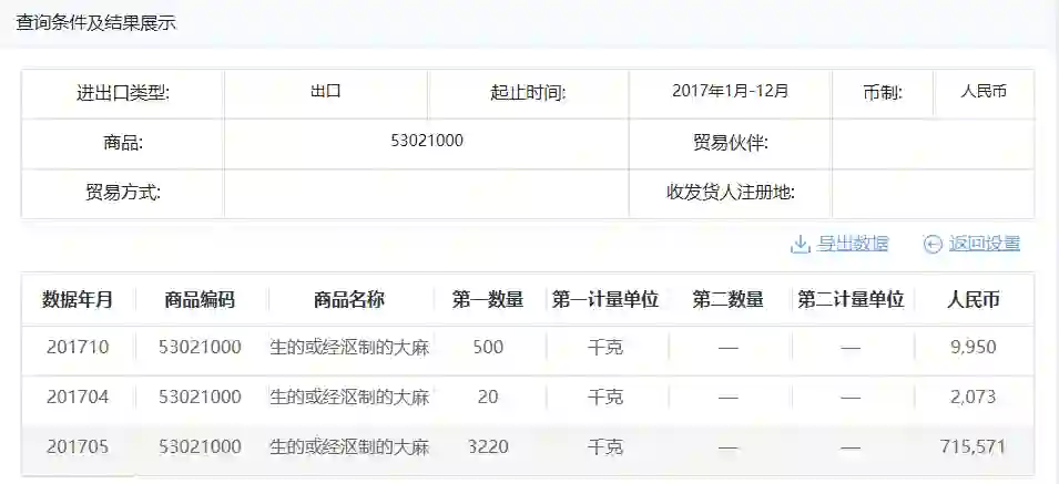 CBD原材料出口:我国工业大麻种植面积已达到全球种植面积的50%以上,但基本不出口。