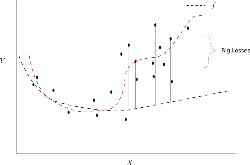 很明显,现在我们需要回答的问题是如何修改算法,使得我们最终学习到红色虚线而不是黑色虚线?简单的回答是,这个问题不存在简单的答案。在这一点上,与其尝试找到解决这类情况的方案,不如集中精力避免这类情况发生。
