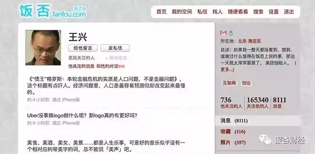 王兴的饭否主页