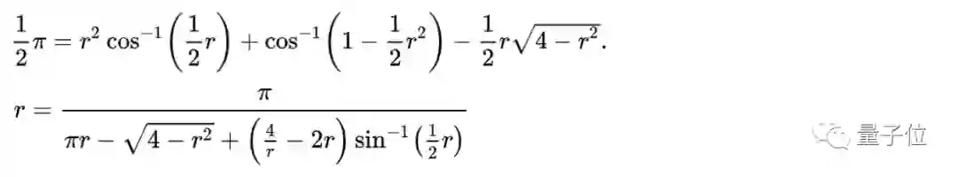 假设围栏的半径为1,那么在「山羊问题」中,求解条件将变成R=d=1,且A=1/2π,求解出来的r符合这一方程式: