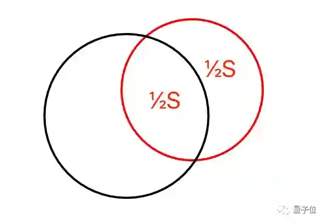 下图中,黑圆恰好将红圆的面积等分,且黑圆的圆心恰好在红圆上。假设红圆半径为R,黑圆半径为r,求r。
