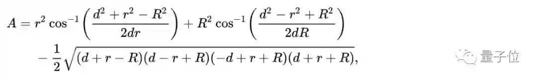 透镜由两个(半径相同或不同的)圆相交构成,求解它的面积A,目前已有这么一个公式(其中,两圆半径为R和r,圆心之间的距离为d):