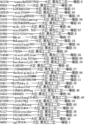 盗过来的号会按照游戏分区,比如:上海一区、上海二区、北京一区这样子。类似下图: