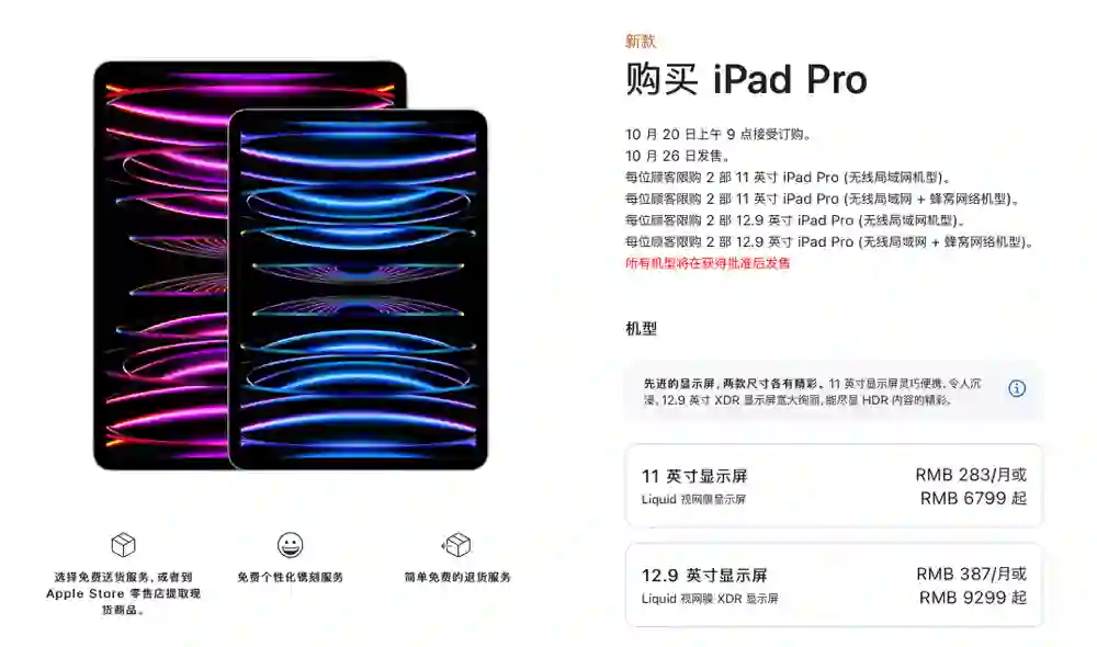 【新款iPad Pro国行售价6799起,搭载M2芯片】