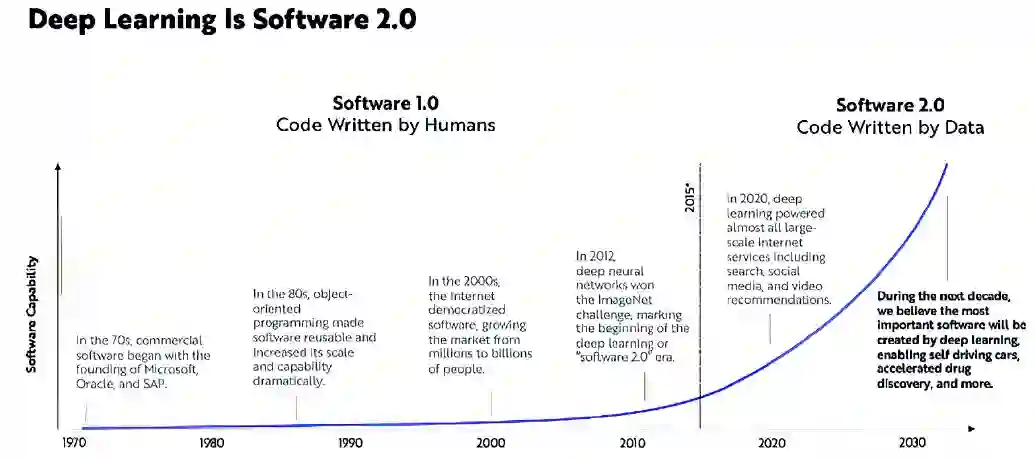 如图3所示,“BigIdeas 2021”提出“Deep Learning”概念,即软件2.0时代。在软件2.0时代,数据结构开始基础设施化,同时高精尖的算法学习流水线化。