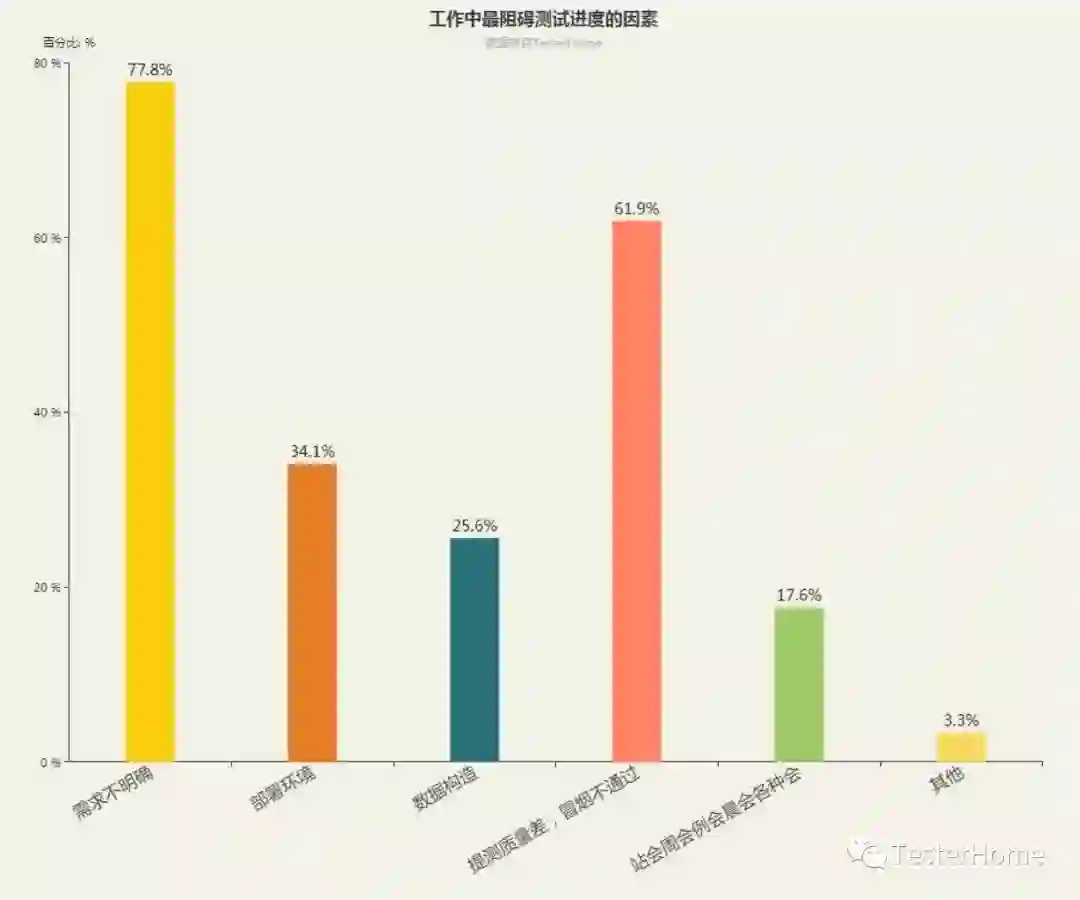 需求不明确居然占据到 77% 的比例,产品经理们请长点心吧。这个锅测试不背。